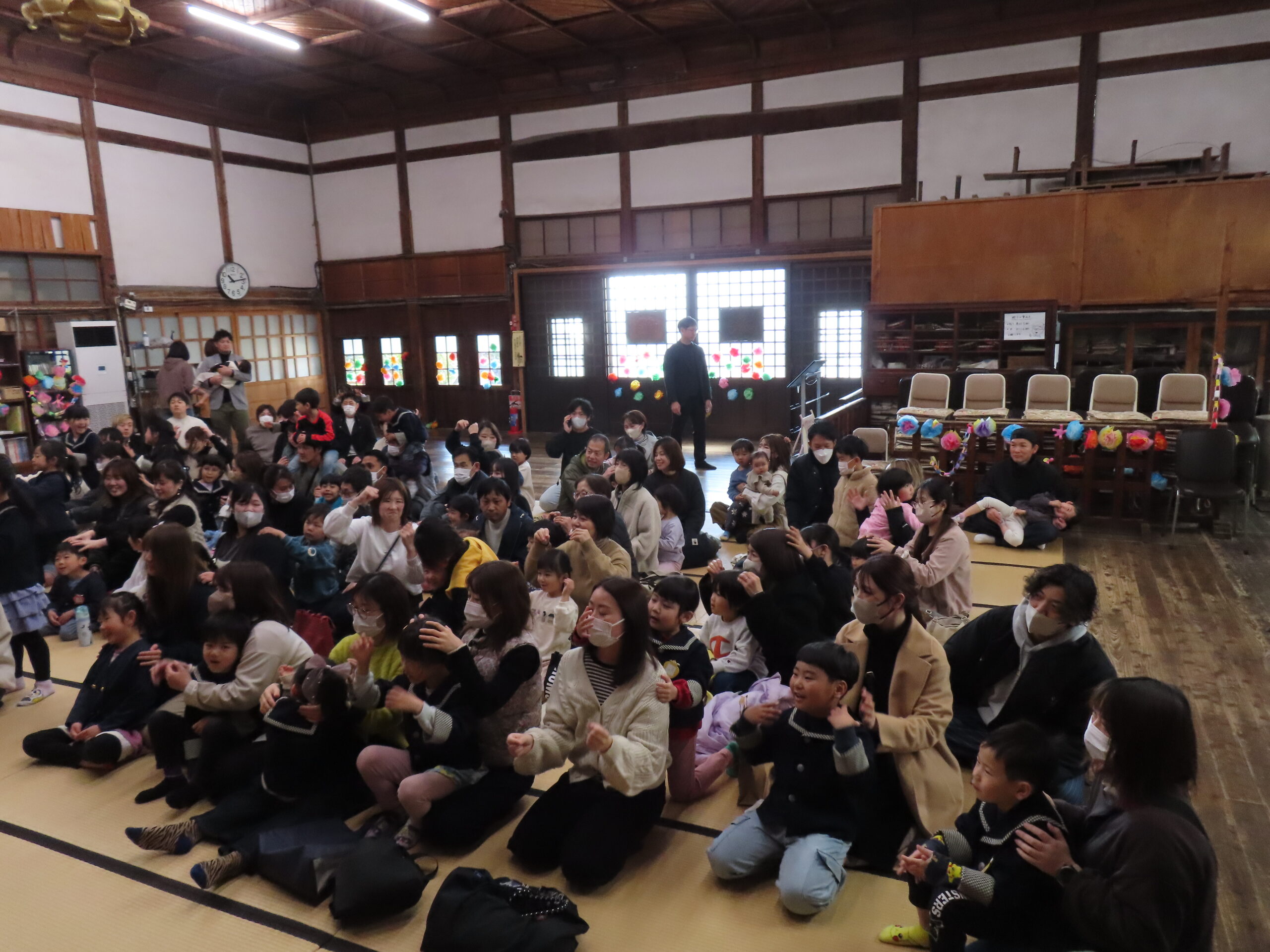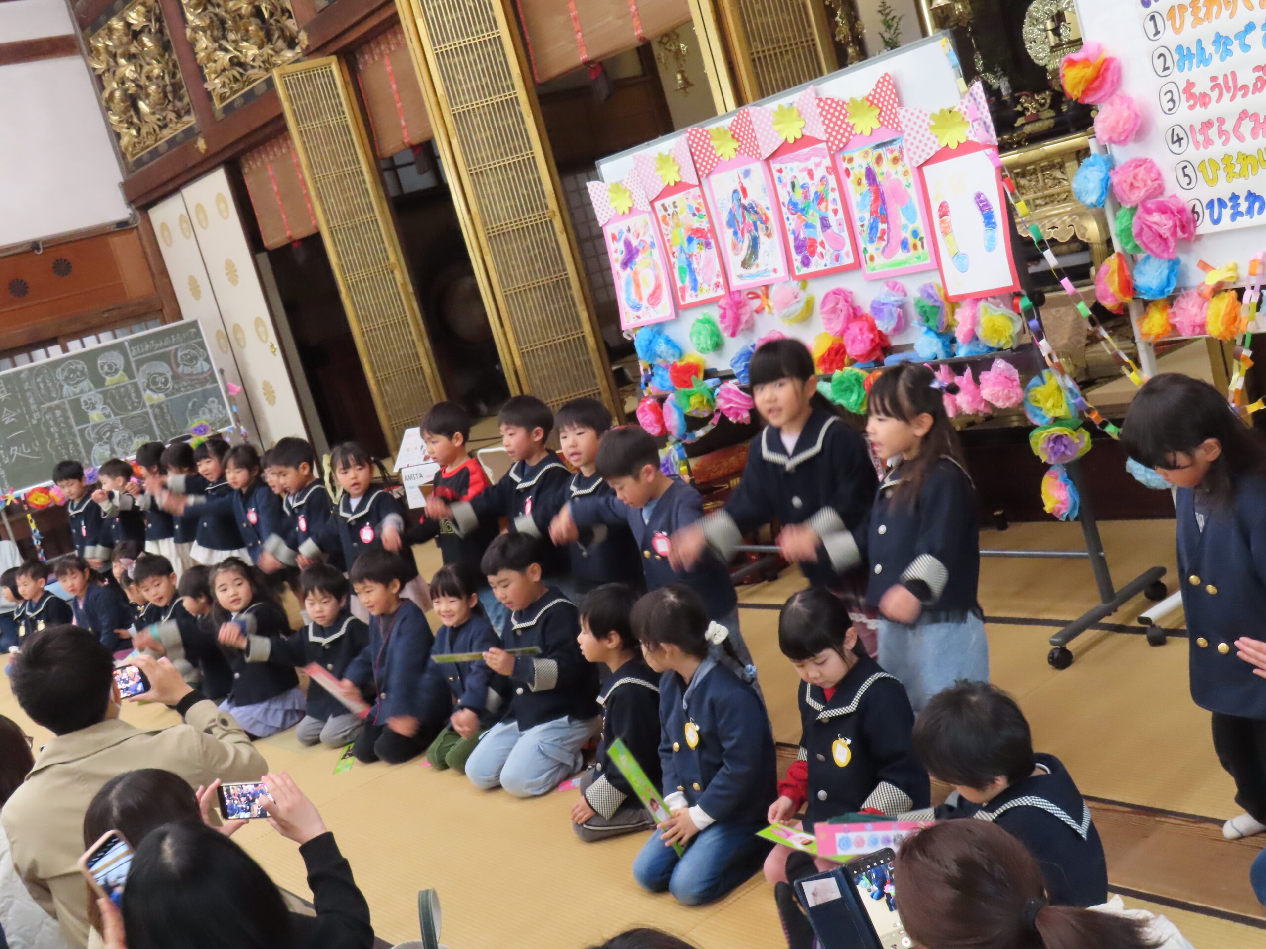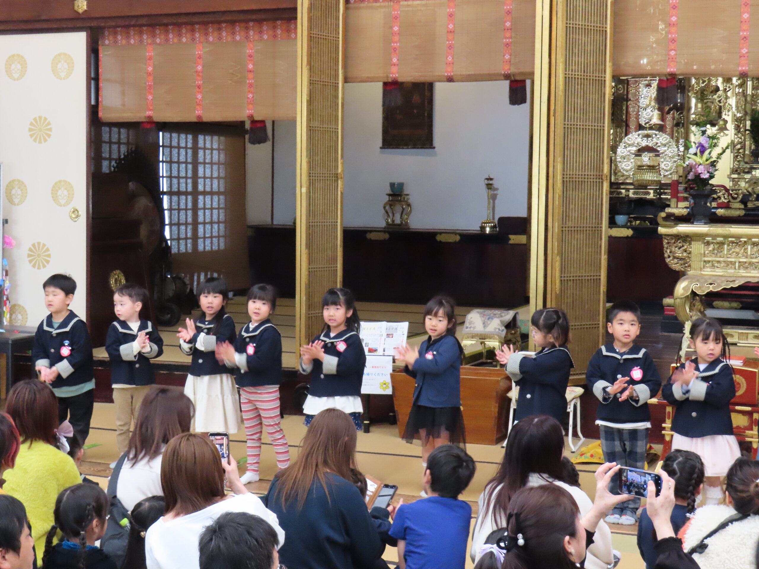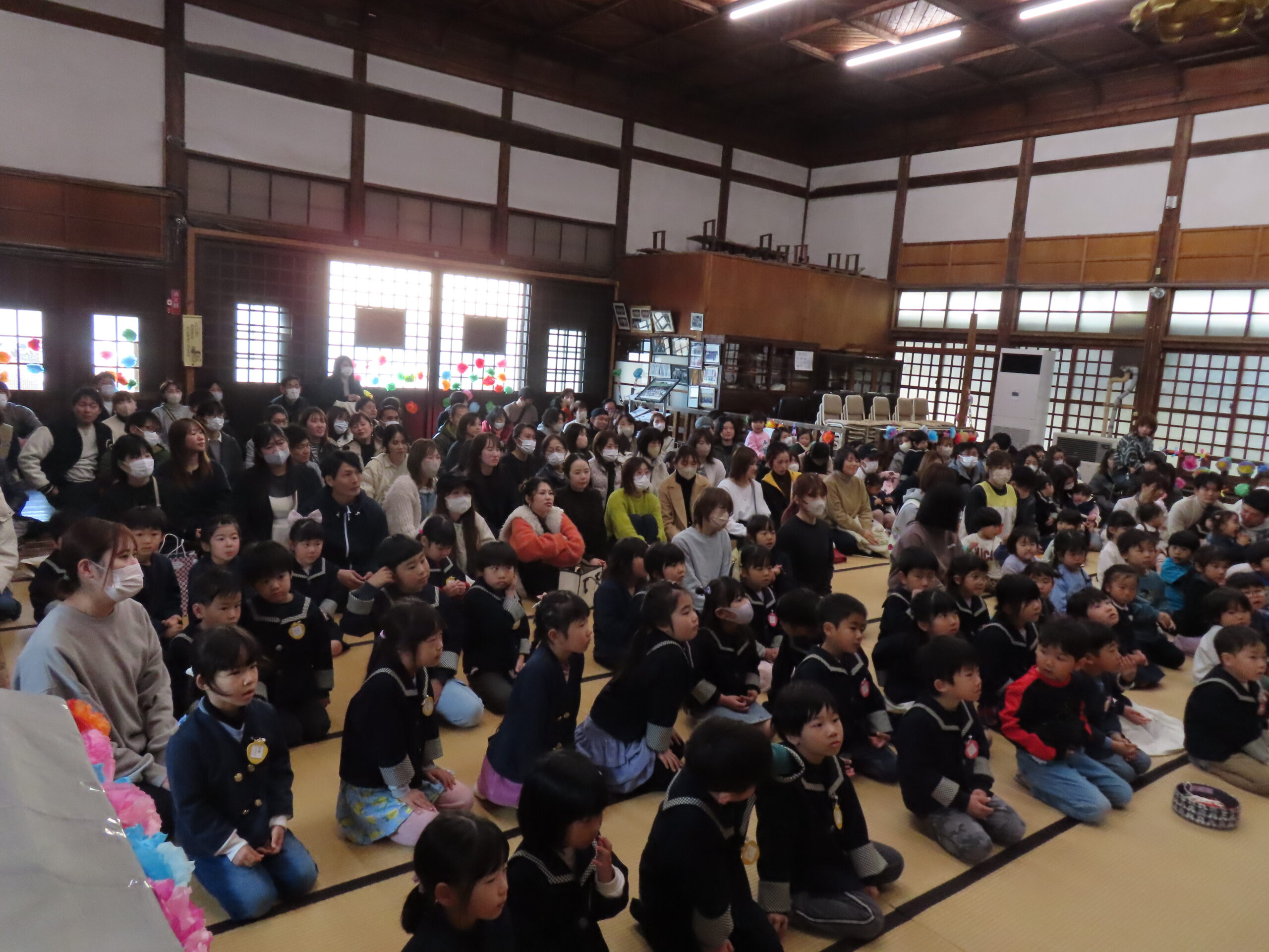 周りにおうちの人がいるけど、園長先生のお話をよく聞けていましたね!すごい!