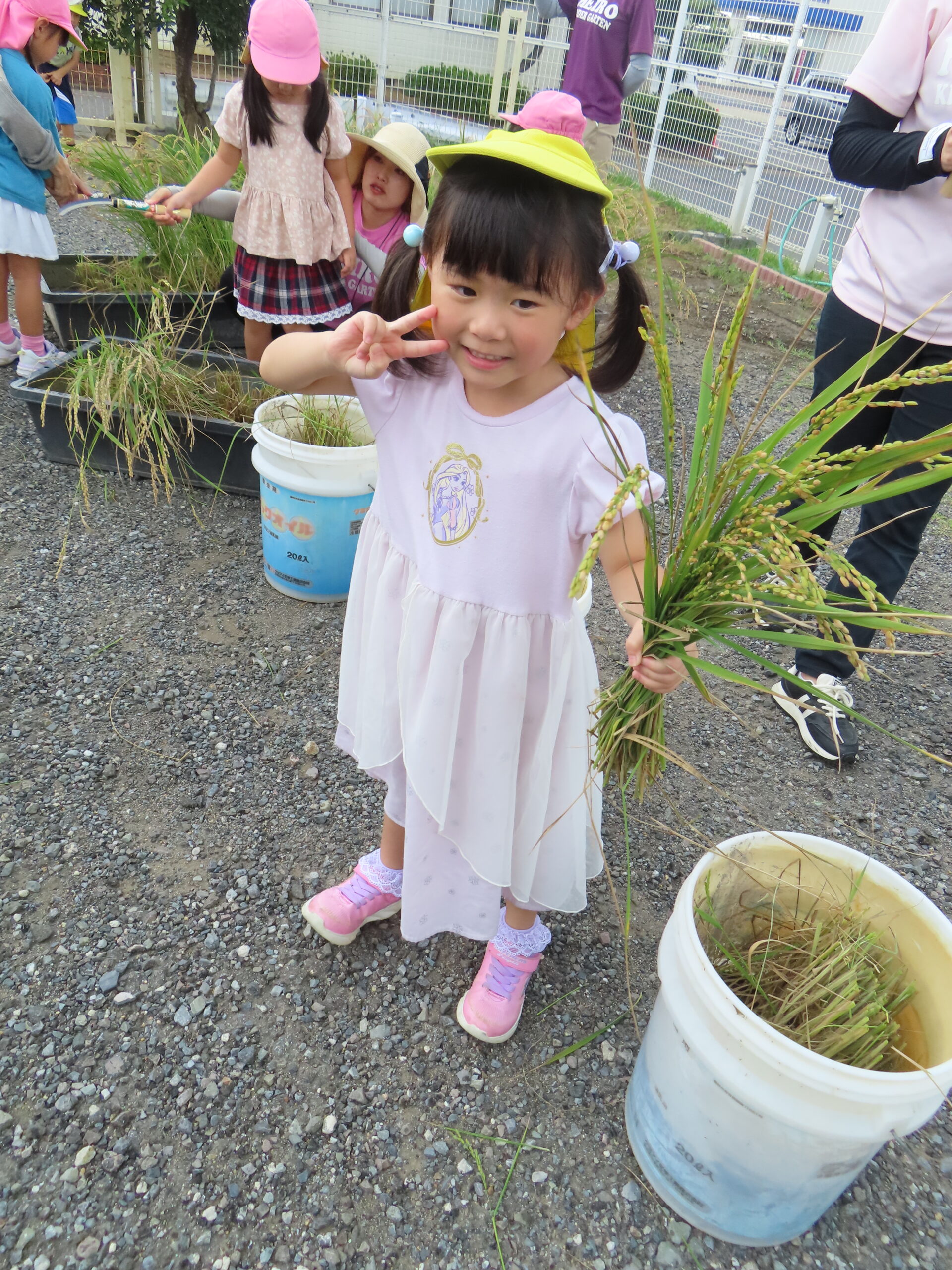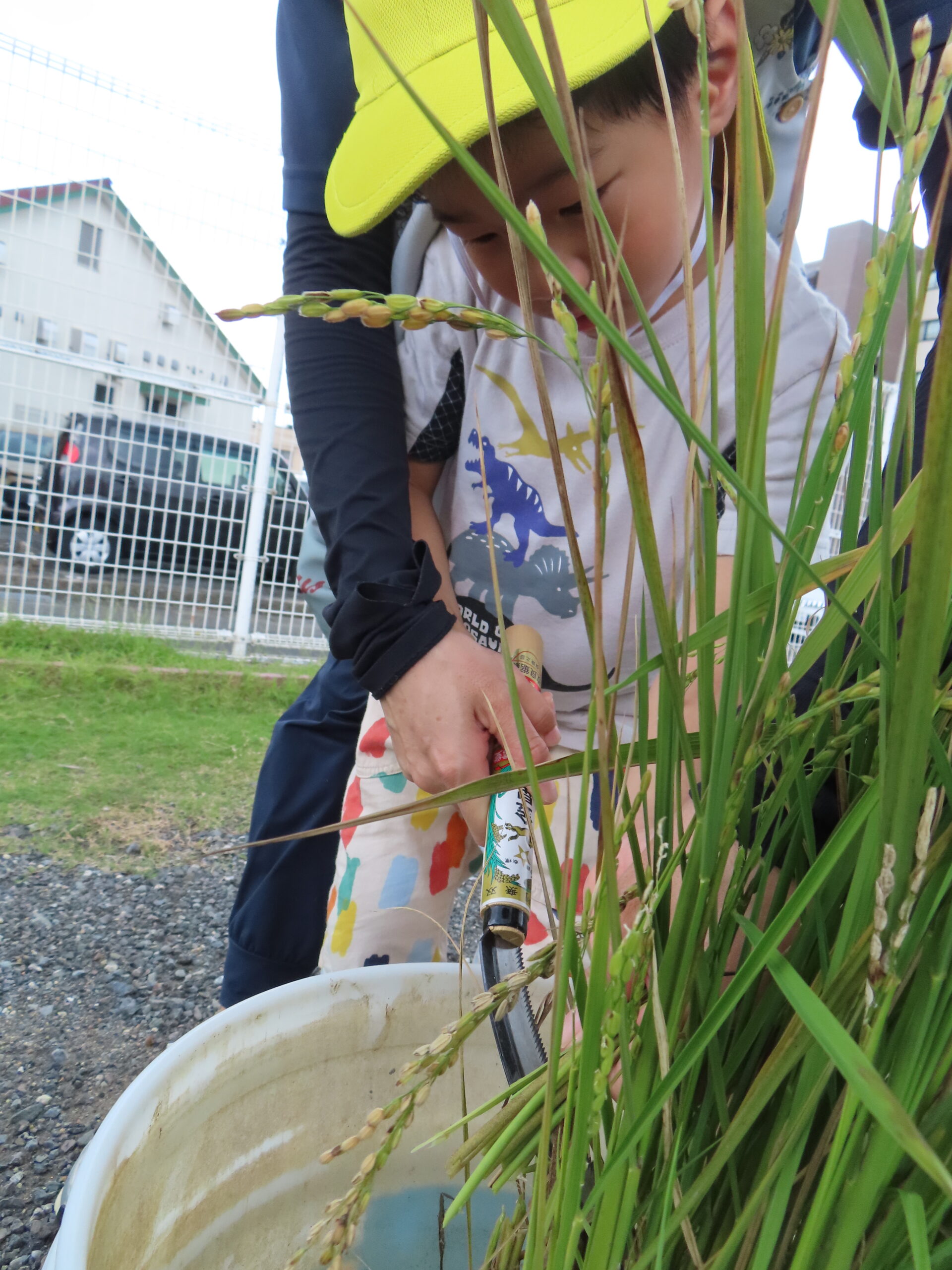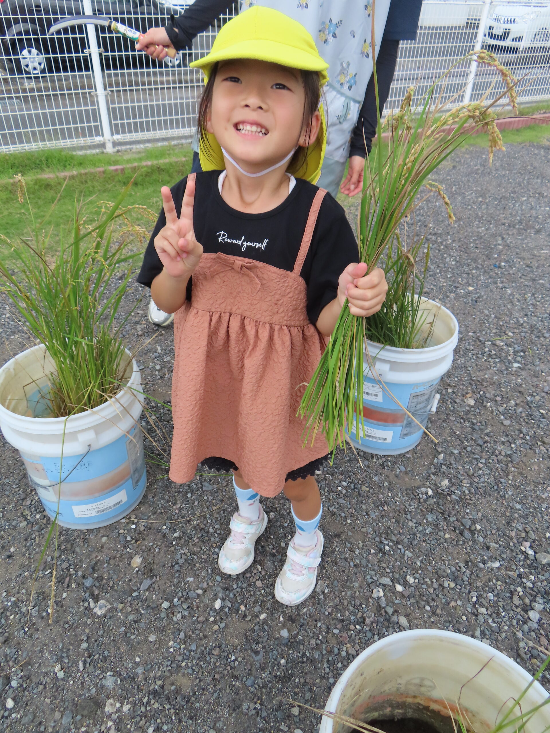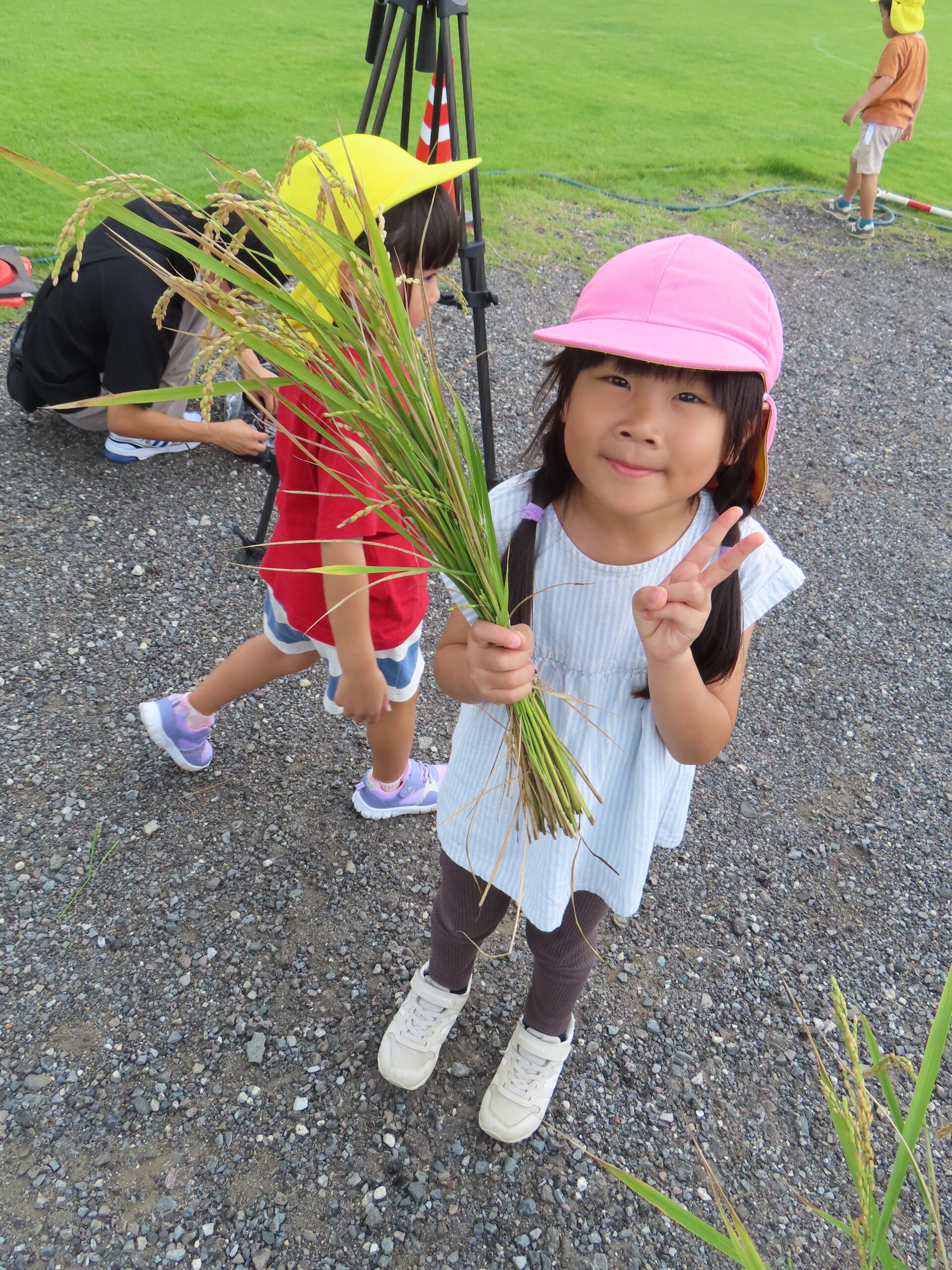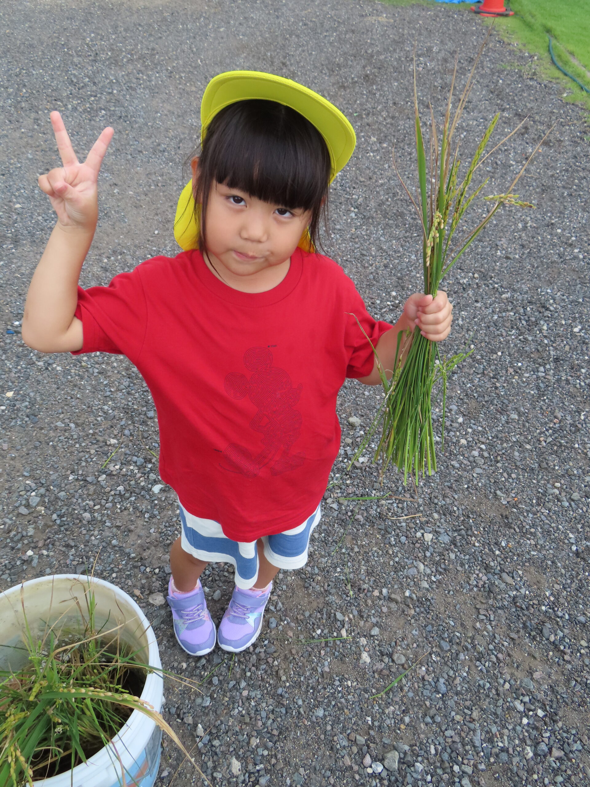 5月に蒔いたお米の種がこんなに大きくなりました。いよいよ収穫しました!