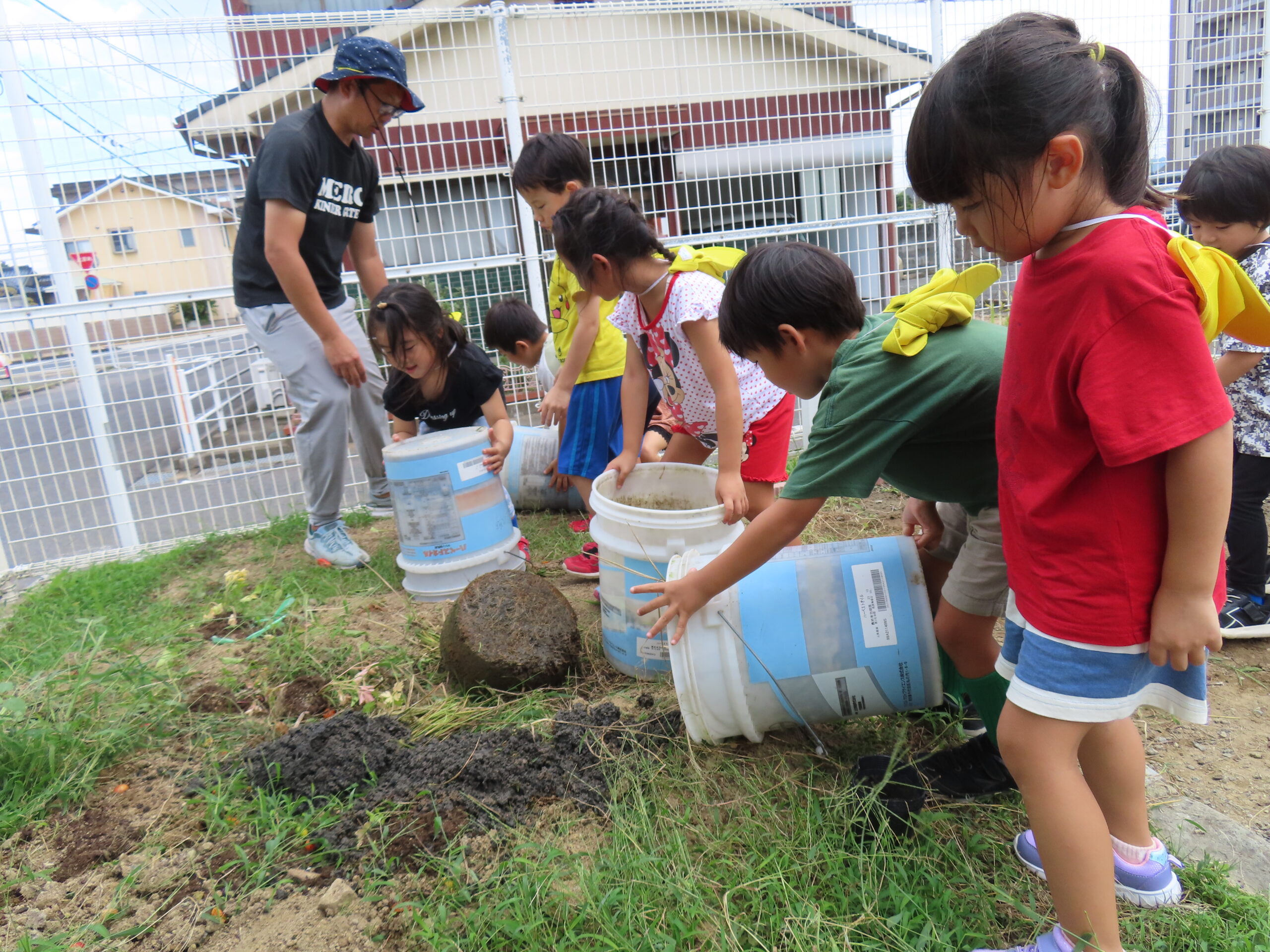 お米を作ってくれた土を今度は畑に入れます。この土が次は畑で野菜を育ててくれる。