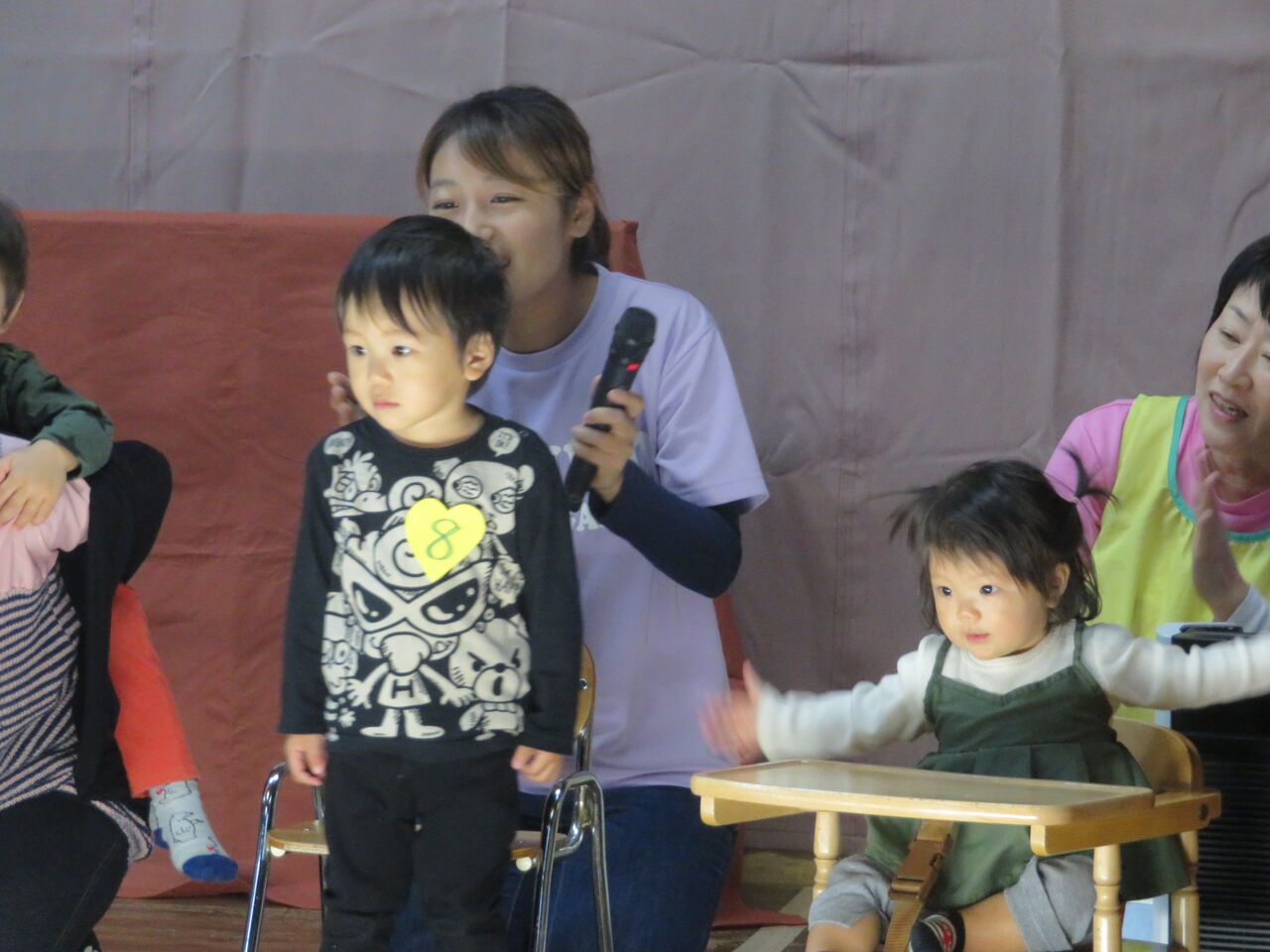 11月の誕生会の特権といえば、ステージの上に上がることができるという、特別感半端ない!