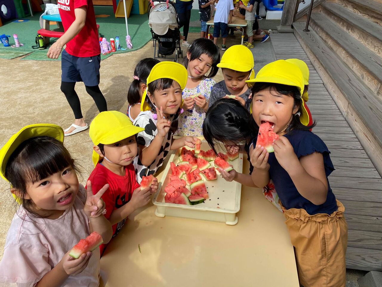 割れた冷たいすいかを早速みんなでほおばって解散になりました!