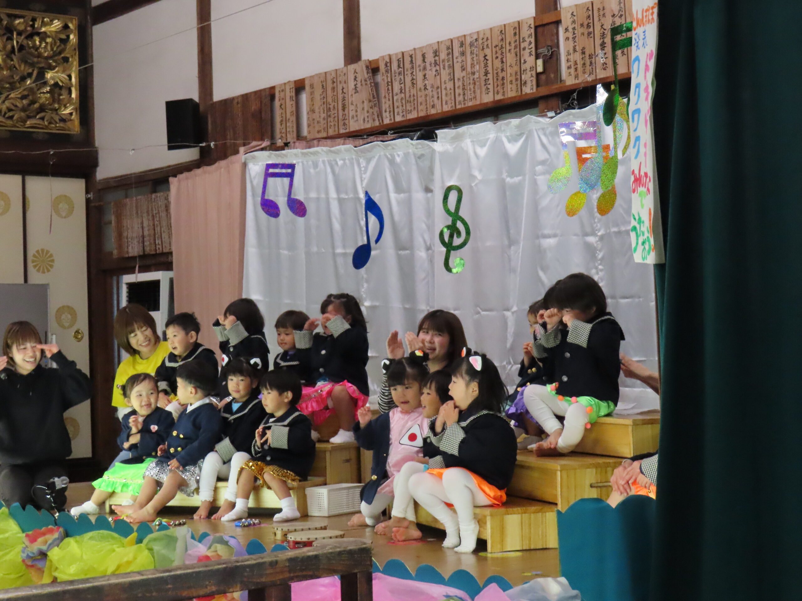 今日、たんぽぽ組とつぼみ組のお遊戯会でした。